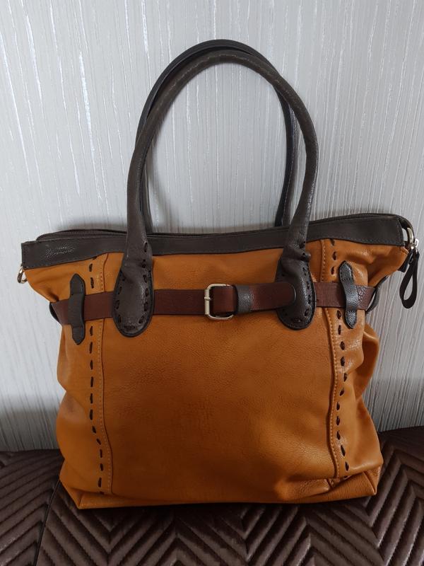 Состояние новой. В комплекте идёт длинный ремешок . Внутри 3 отделения 2 карманчика для телефона и 1 внутренний карман на замке . Цвет рыжий ( матовый, не яркий )
