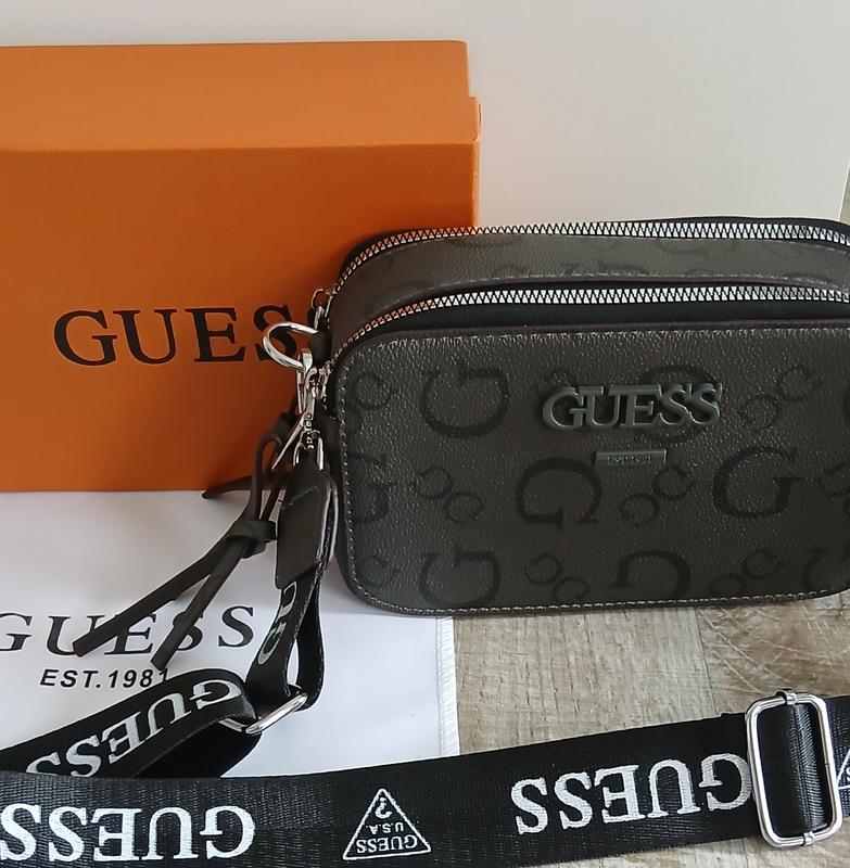 Новая женская сумка, кросс-боди, 1:1 Guess. Отличного качества, одно отделение, две молнии, карман с внешней стороны, ремень регулируется по высоте, черноно и серого цветов, как на фото. Размеры: 20 х 11,5 х 7. В комплекте брендированная подарочная коробка и задор