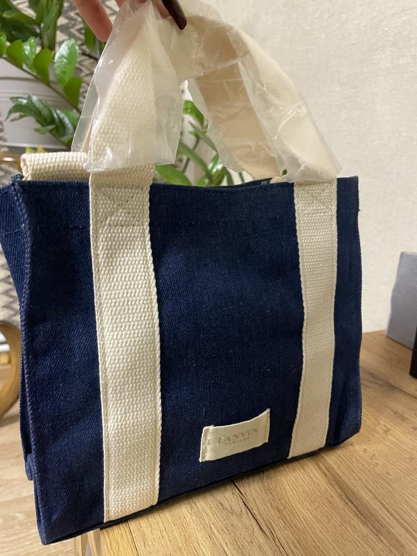 Ексклюзивна міні-сумка-тоут LANVIN en Bleu (Нова!) Пропоную до продажу стильну та якісну міні-сумку-тоут від преміального бренду LANVIN en Bleu (Японія). Це ідеальний аксесуар, що поєднує практичність та високу моду. Основні характеристики: • Дизайн: Класична форма "тоут" у мініатюрному розмірі. • Колір та Матеріал: Насичений темно-синій денім (джинс) у поєднанні з контрастними широкими ручками та оздобленням із натурального полотна (бежевий/екра). • Бренд: Фірмовий тканинний патч LANVIN en Bleu на лицьовій стороні. • Стан: НОВА, без жодних слідів використання. Ручки у захисній плівці (як видно на фото). • Функціональність: Ідеальний розмір для телефону, гаманця, ключів та невеликого блокнота. Стильний вибір для city-look.