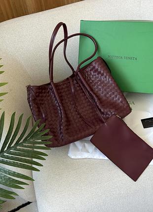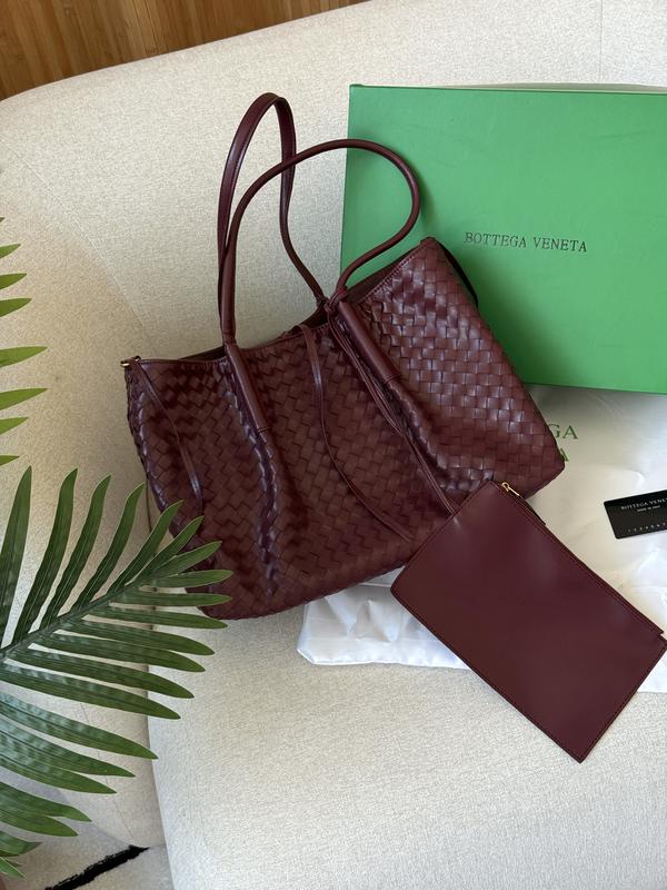 Розмір: 38 х 27 х 16 см ⏺ Матеріал: Шкіра Сумка виготовлена з гладкої плетеної шкіри у фірмовому стилі. Всередині одне велике відділення. Підкладка з бархатистого текстилю, є фірмова нашивка тисненням. Зачиняється відділення на металевій кнопці. Має шкіряні ручки для носіння у руці або на плечі. Комплектується у брендову коробку кришка-дно та пильовик, є картка.