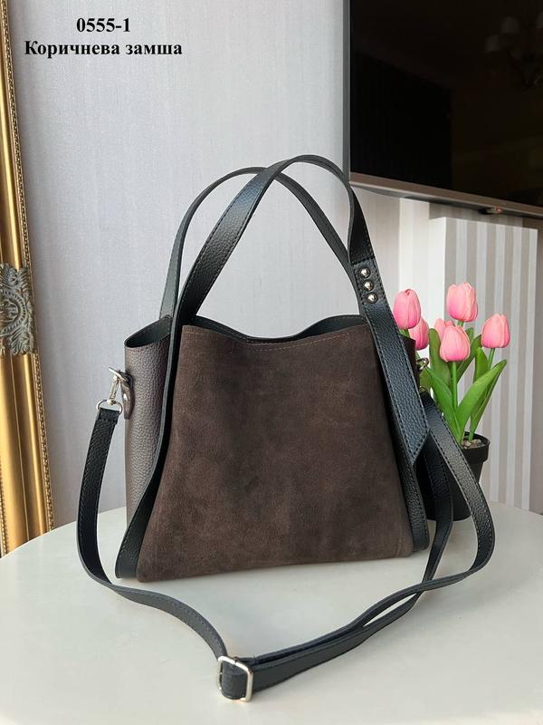 Женская стильная и качественная сумка из натуральной замши и эко коричневая
