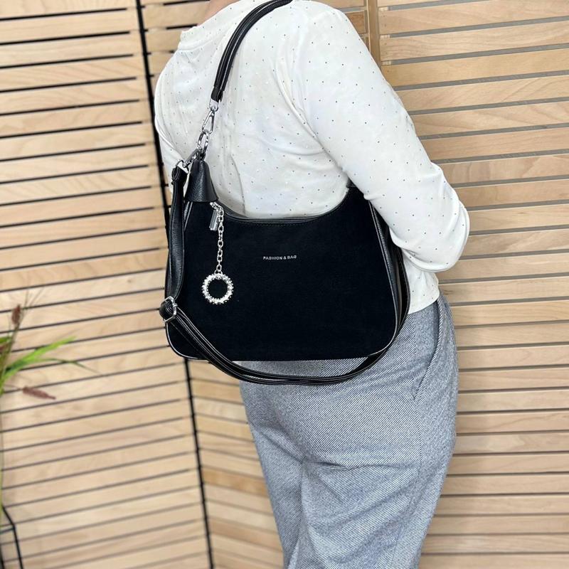 Женская стильная и качественная сумка из натуральной замши и эко кожи черная
