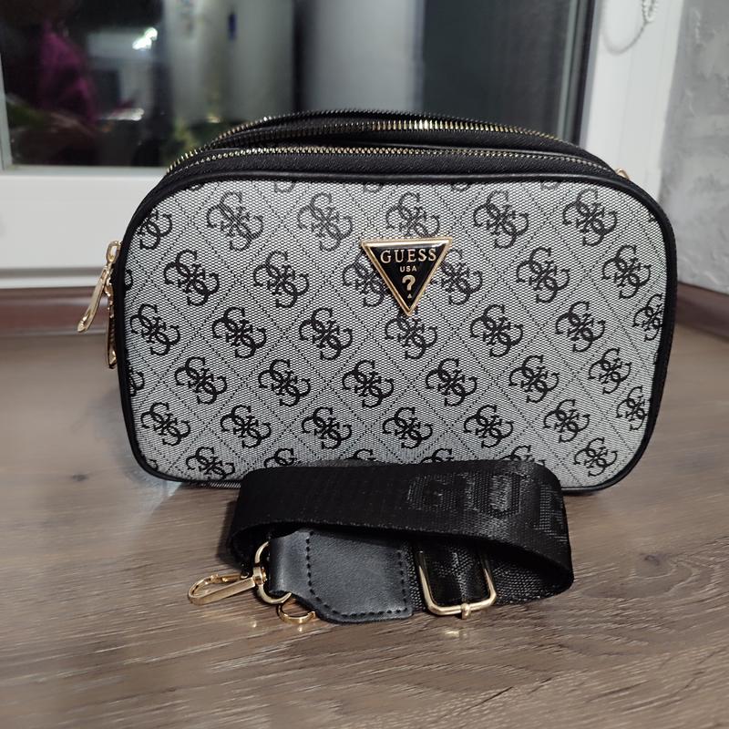 На три відділи,має довгу ручку.Якісна фурнітура. Якісний замінник