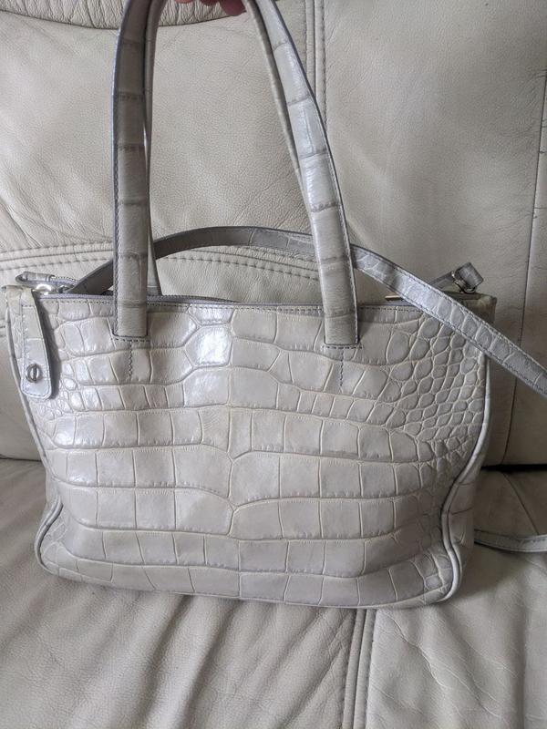 Сумка люкс бренда в идеальном состоянии 🔥 Шикарный цвет - молочный Кожа рептилий 💪 Имеет много отделений и очень содержимое 🔝 Замеры: Длина 33 Высота 25 Ширина по дну 13 Длина ручки длинной113 см Красива вишукана сумочка ❤️