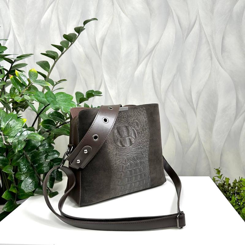 Удобная, красивая, сумочка на три отделения 🔥 Материал - ✅Натуральная замша+ эко кожа. Размеры: Высота - 23,5 см Ширина - 26 см Дно - 11 см Короткая ручка,зъемная. Длинный регулируемый ремешок Сумочка имеет три отделения. Основной отдел на молнии, два других отдела закрываются на кнопку-магнит. Внутри один карман на молнии и еще один открытый карман.