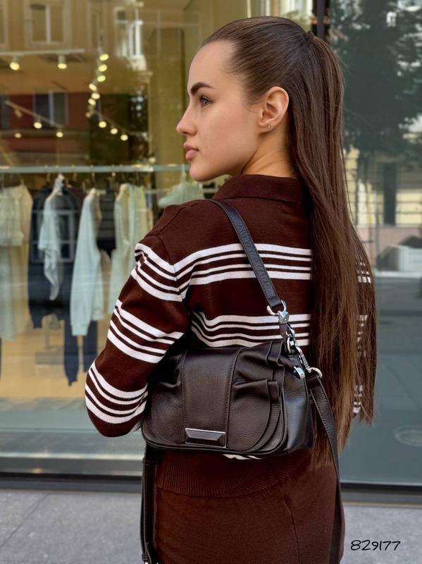 Цвет: черный; шоколад Размер: 21/16 ремешок длинный регулируется Материал: Натуральная Кожа Форму держит отлично 2 отделения внутри