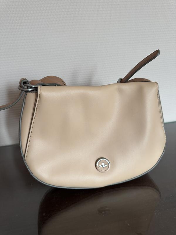 Сумка NIKA, з мʼякої еко шкіри на блискавці, має довгий ремінець через плече.Наявні лущення тканини по краю .