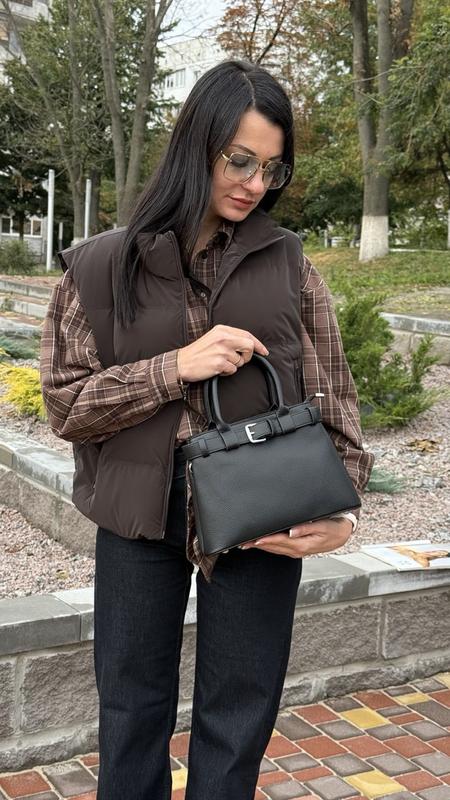 Код: 5128 Производство: Турция. Цвет: Черный. Материал: Эко кожа. Одно основное отделение. Короткая ручка/ плечевой ремешок. Два внутренних кармана, один на молнии. Размеры: 26*19