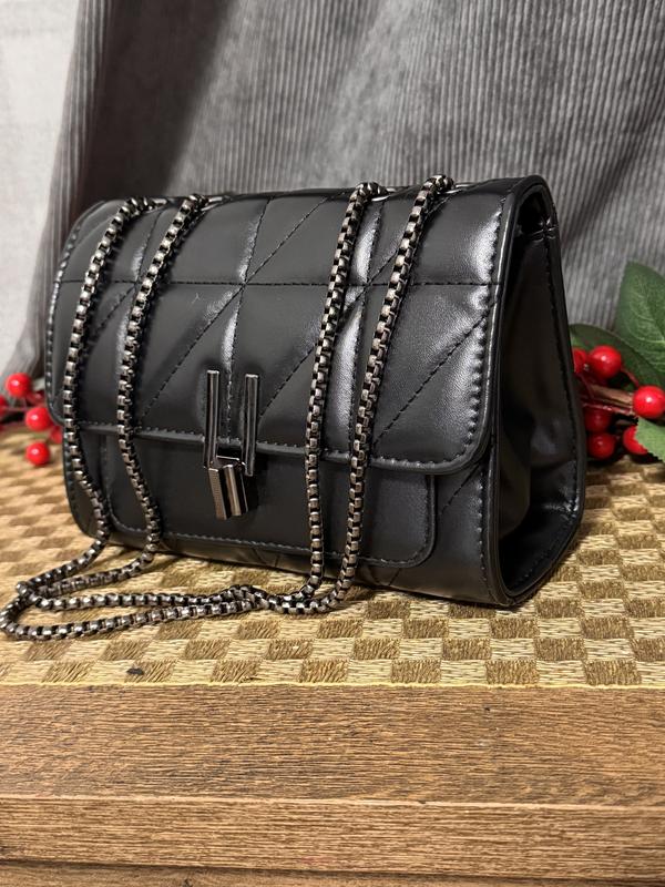 🖤 Сумочка с цепочкой - классика, которая никогда не выходит из моды Размер 19×8 см - маленькая элегантная сумочка, созданная для вечерних выходов и стильных будней. Материал - мягкая экокожа с прошивкой «диамант», которая добавляет объема и изысканности. ✨ Особенности: • металлическая цепочка вместо ремешка • надежная металлическая застежка • плотная форма, которая отлично держит вид • базовый черный цвет, подходящий ко всему Идеальный акцент к любому образу.