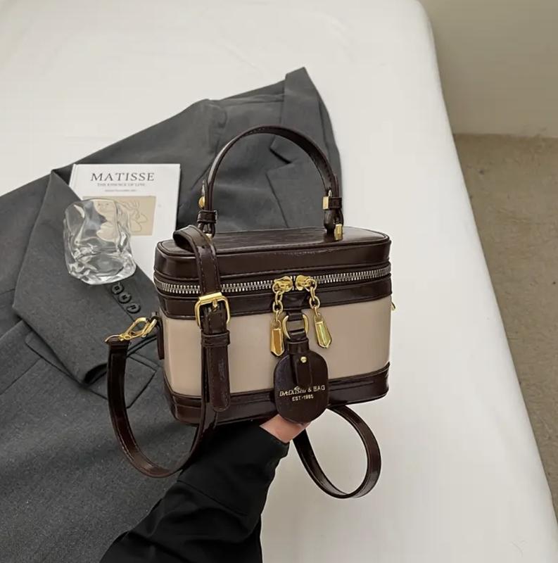 Елегантна вінтажна жіноча сумка на плече - коричнева з золотим обладнанням, знімний ремінець, застібка-блискавка, поліестерова підкладка.