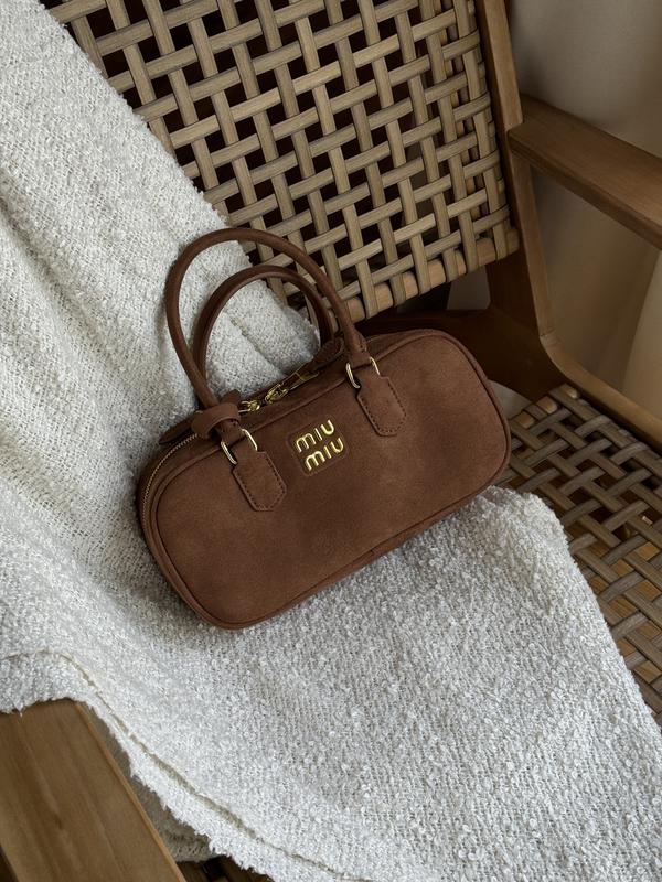 ❤️ Miu Miu Arcadie Textile Bag Brown (Арт: 99541) ⏺ Розмір: 28 х 13 х 9 см ⏺ Матеріал: Текстиль Сумка виготовлена з м’якого текстилю, подібного на замшу. Всередині одне відділення, також є кишеня на застібці. Підкладка з щільного текстилю. Зачиняється на застібці. Фурнітура металева, брендована. Ремінець для носіння через плече виконаний, на карабінах, з регулюємою довжиною. Комплектується в брендовій коробці та пильовику.