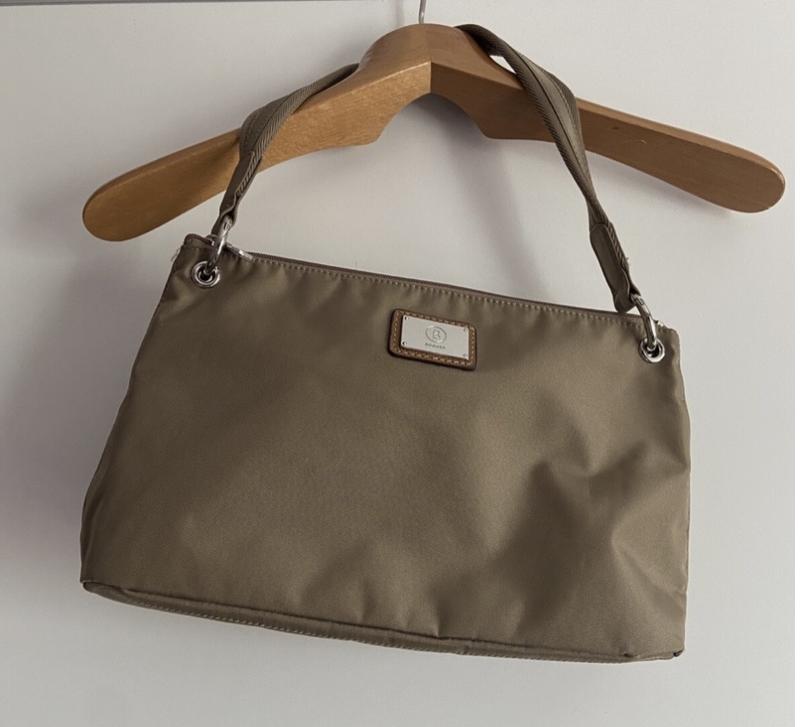 Нейлонова сумка багет від Bogner.Сумка має одне відділення,всередині з обох боків кармани на блискавці і на кнопках. Висота сумки 20 Ширина низ 30 Ручка 23(висота)