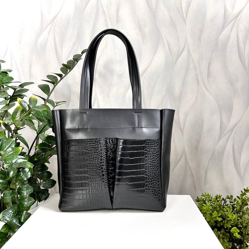 🔥Вмістка, гарна модель сумочки під формат А4 🔥 📐Розмір: Висота-30 см Ширина по низу - 33 см Дно-14 см Довжина ручок- 57 см Матеріал - еко шкіра. 📌Сумка має одне відділення. 📌Всередині дві відкриті кишені та одна на блискавці. 📌Спереду дві відкриті кишені. 📌З тильної сторони кишеня на блискавці. Модель -9991810