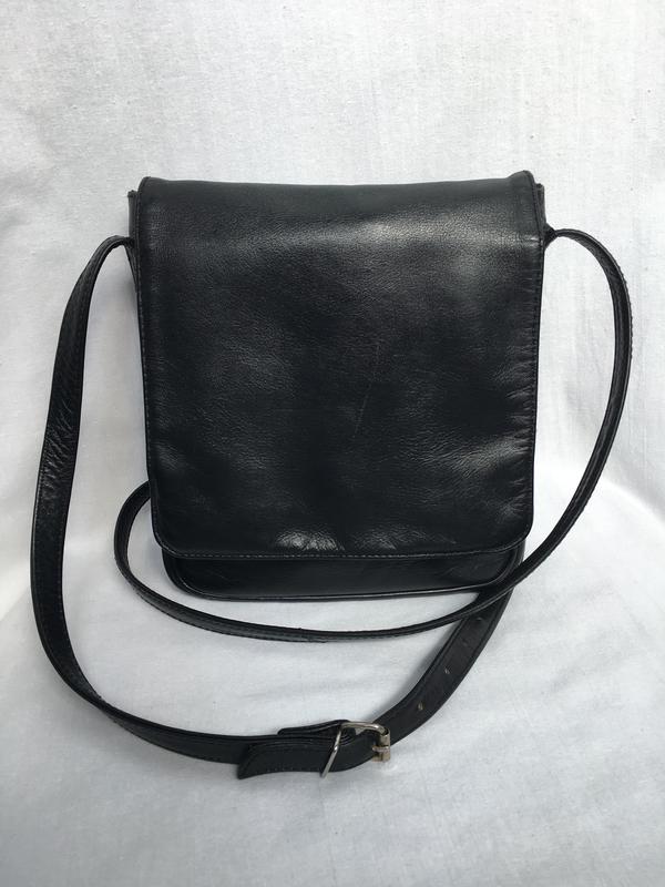 Шкіряна невелика сумка крос-боді від DEBENHAMS Стан гарний, без дефектів, тільки шкіра зім‘ята Сумка зачиняється клапаном с магнітом, одне відділення, попереду карман, та у середині карман на блискавці, також позаду карман на блискавці. Ремінь регулюється Висота 20 см Ширина 21 см Ширина дна 5 см Ремінь 125 см