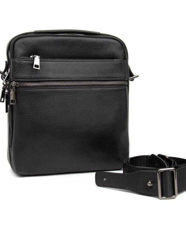 Незаменимый аксессуар на каждый день, в котором вы будете носить ваши необходимые вещи в компактности и удобстве. Мужская сумочка среднего размера выполнена из зернистой кожи. Модель имеет два основных отделения и дополнительные карманы на молнии и без. Для удобного ношения есть ручка или ремень, который свободно регулируется. Размеры: 22см * 25см * 8,5см Цвет: черный Производитель: Италия