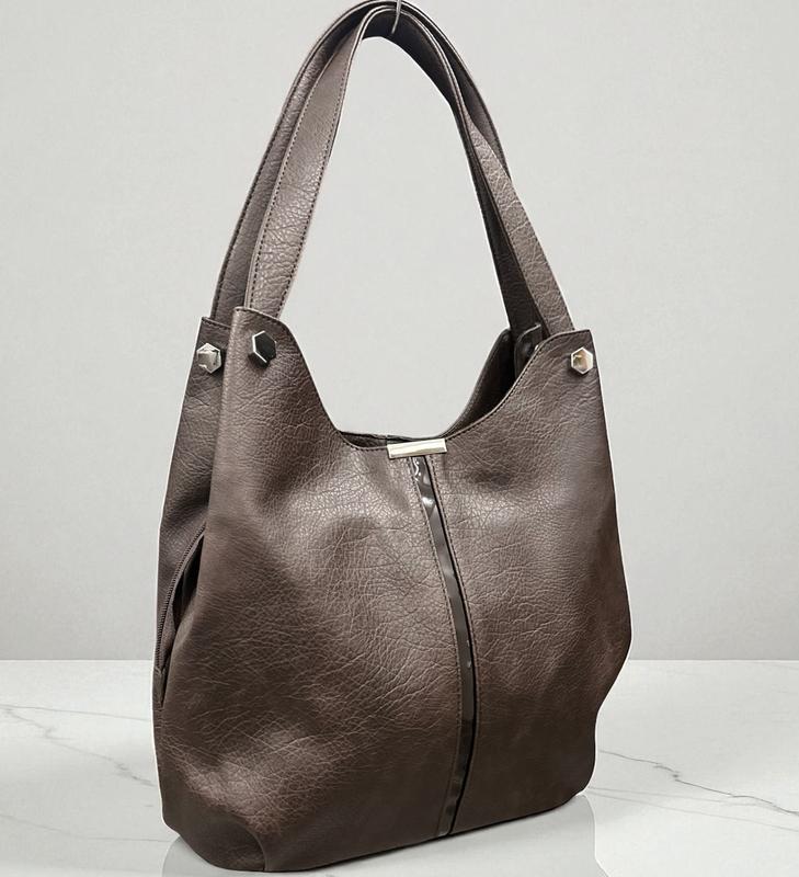 Вместительная комфортная в которой легко и удобно разместятся предметы повседневного обихода. -Снаружи эко кожа премиум качества -С тыльной стороны эко кожа премиум качества -Универсальные ручки, удобно носить как на плече так и в руке. -Сумочка имеет два отделения, между ними карман-перегородка на молнии. -Внутри дополнительные карманы (открытый и карман на молнии). -Сумка закрывается на молнию. Размеры : высота - по центру 27 см (боковая -33 см) длина - 30 см ширина -15 см ручки - 50 см Материал: эко кожа премиум качества Женская сумка харьковской фабрики Valetta. Лучшее сочетание цены и качества. Все сумки проходят контроль качества и соответствуют требованиям ГОСТ. Красивый дизайн, износостойкие материалы, долгий срок службы, качественная фурнитура, низкая цена.