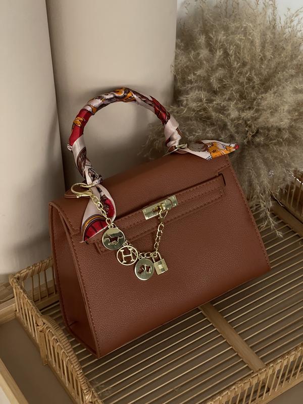 Сумка Hermes Kelly Medium size з хустинкою код Коричневий 20228-7 Сумка виготовлена з структурної еко-шкіри. Всередині одне відділення, Підкладка у сумки з чорної еко-шкіри, з логотипом, присутні серійний номер і бірка з QR-кодом. Зачиняється завдяки фірмовому механізму з ременями та замочком. Має металеві ножки. Фурнітура металева, брендована в золоті. Має ручку для носіння у руці та ремінець з регулюємою довжиною для носіння через плече. Розмір: 24.5*19.5*10.5см Матеріал: еко-шкіра Максимальна довжина широко ременя 125см ⭐️ Коробка, пильовик , буклети в комплекті