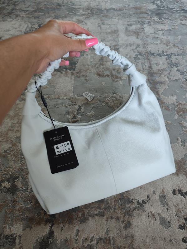 Белая кожаная сумка среднего размера 35*17*12,длинный ремешок в комплекте, вместительная.