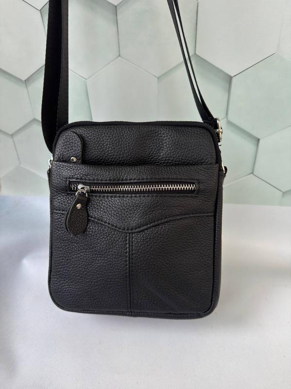 18\21\6см натуральная кожа Основное отделение на молнии. Внутри 1 карман на молнии. На фасаде 2 кармана на молнии. С тыльной стороны карман на молнии. В комплекте регулируемый ремень.
