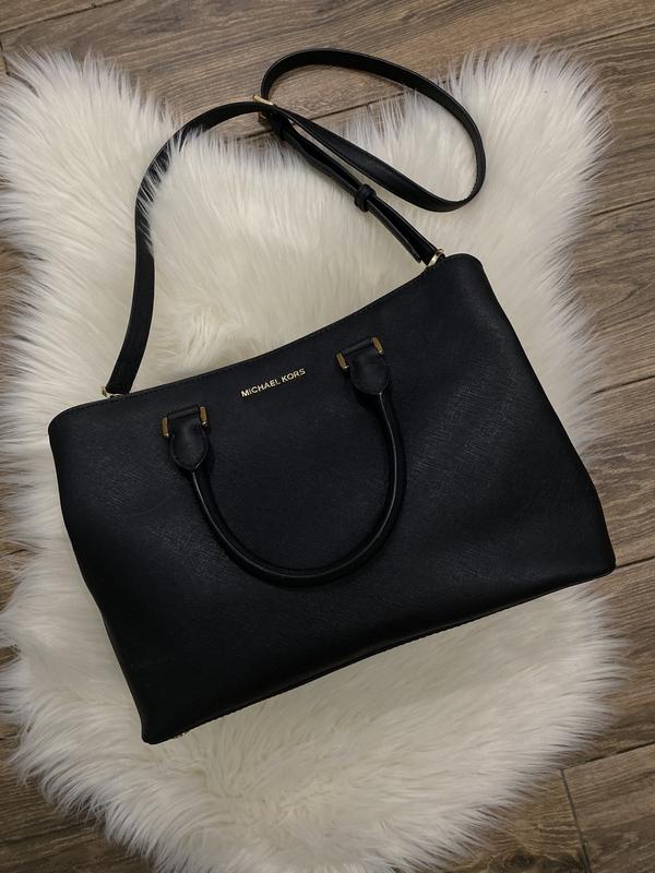 Сумка Michael Michael Kors виготовлена з натуральної шкіри. Особливості: текстильна підкладка; три відділення - одне на блискавці та два на магніті; всередині - одна кишеня на блискавці та чотири без застібки. Матеріал верху : натуральна шкіра Внутрішній матеріал : текстильна підкладка з лого бренду Висота 24 см Ширина 33.5 см Ширина дна 12 см Розмір ноутбука 13.6" Довжина ручок 34 см Колір чорний Візерунок однотонний Каркас сумки жорсткий Внутрішні кишені 3 Застібка магніт Країна виробництва М'янма Плечовий ремінь відсутній Артикул MI048BWLLF68 Стан дуже хороший