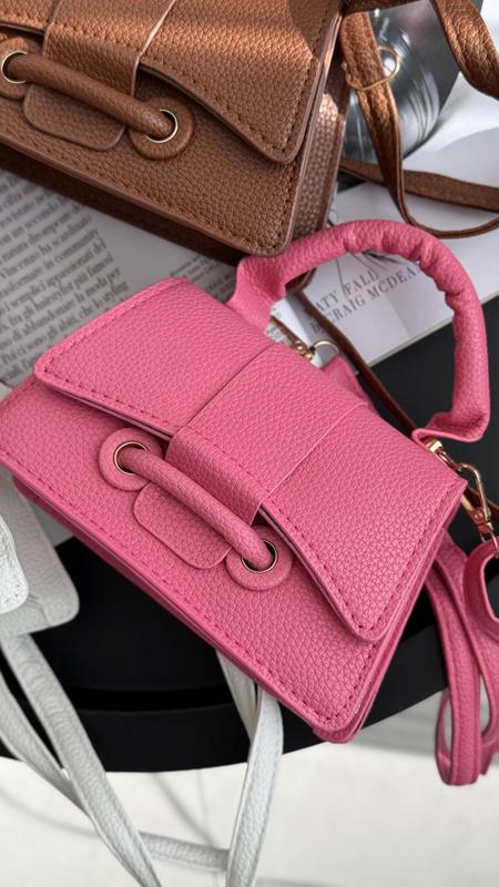 Класична міні сумочка яскравого рожевого кольору. Мрія кожної маленької дівчинки. Дві ручки: коротка та регульована довга. На канапках - магнітах. Одне відділення.