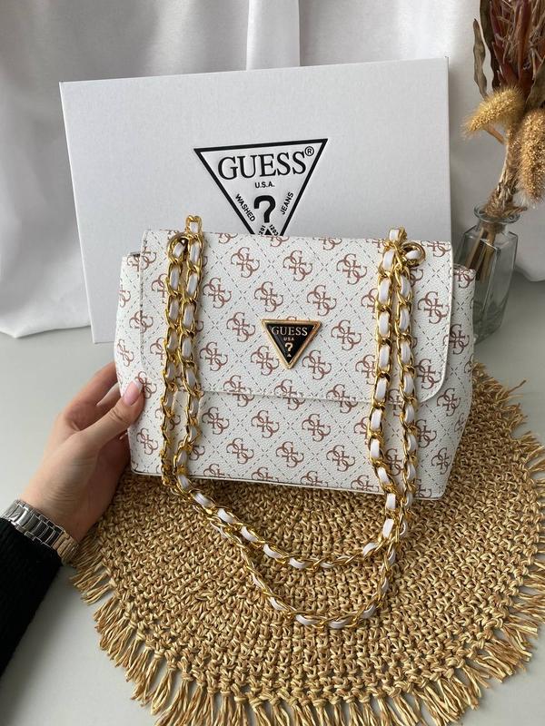 Guess Amara White Арт. 3023 ▫️Матеріал: еко-шкіра ▫️Розмір: 25х17x7см ▫️Одне відділення + карманчик ▫️Пакування: брендована коробка, пакувальний папір, наліпка Бб