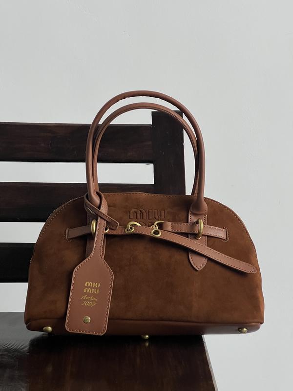 Сумка Miu Miu Aventure Nappa Suede КОД карамель 20071-3 Сумка із верхньою ручкою Aventure. На сумці виконано тиснення логотипу. Усередині одне відділення із кишенею. Наши логотип з бирками. Закривається на блискавку. Знімний, регульований шкіряний плечовий ремінь у комплекті, максимальна довжина 110см. Зістарена золотиста фурнітура металева. Матеріал: штучна замша високого класу. Розмір: 31 X 18 X 11см ⭐️ Пильовик в комплекті