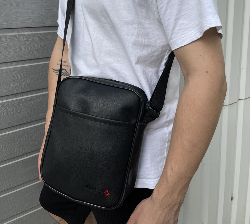Сумка чорна reebok еко шкіра, барсетка чоловіча, сумка спортивна, сумка через плече