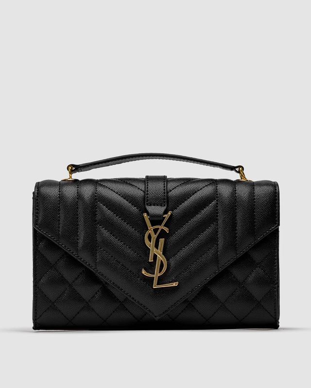 👜 Saint Laurent Leather Envelope Chain Bag (Арт: 99375) 📐 Розмір: 21.5 x 13 х 6 см 🧵 Матеріал: Шкіра Сумка виготовлена з зернистої шкіри, прострочена. Має одне відділення, зачиняється на магніті-клапані. Всередині є невелика кишеня з фірмовою нашивкою. Підкладка виконана з гладкої шкіри. Якісна фурнітура з усіма брендовими написами. Ланцюжок має фіксовану довжину, але можна відрегулювати для носіння через плече та у руці. Комплектується у брендовій коробці та пильовику.