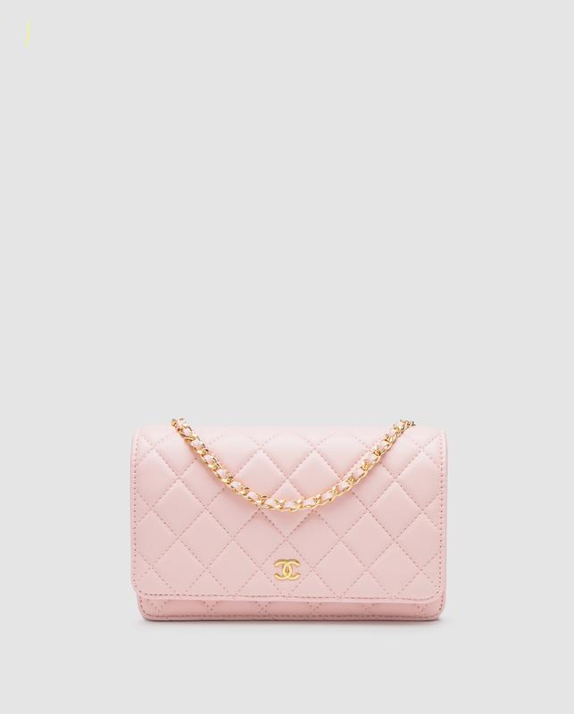 Сумка шанель classic wallet on chain pink/gold
