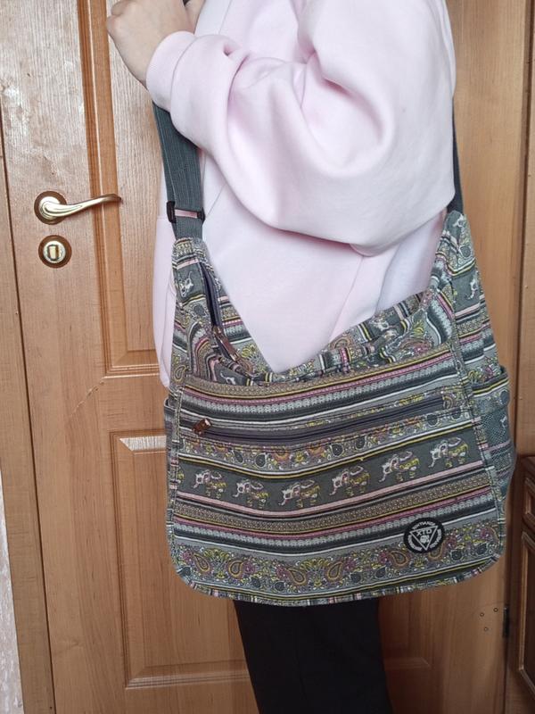 сумка через плечо,ремень регулируется.Мает 3 отделения, на застежках,фурнитура работает