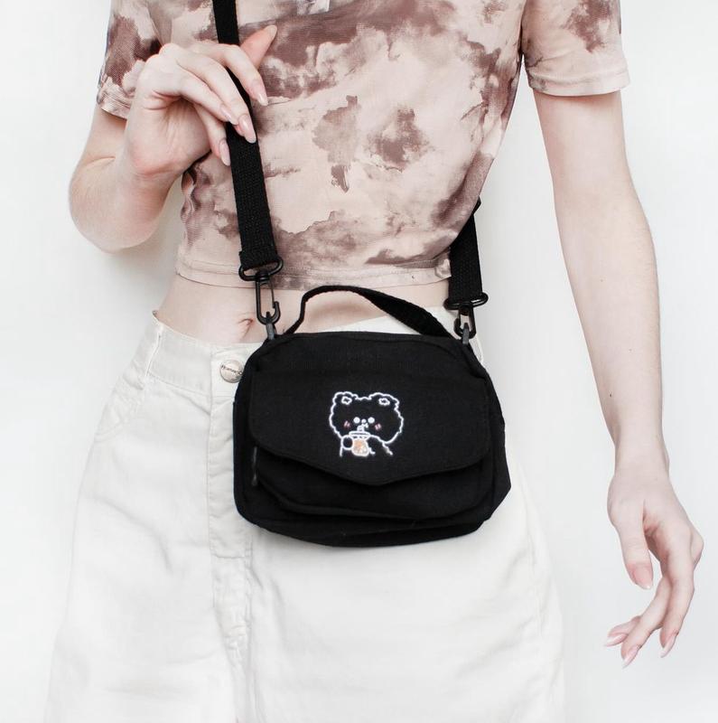 Мини сумка с вышивкой мишка с баббл те детская на 2 отделения кросс-боди японский харадзюк...