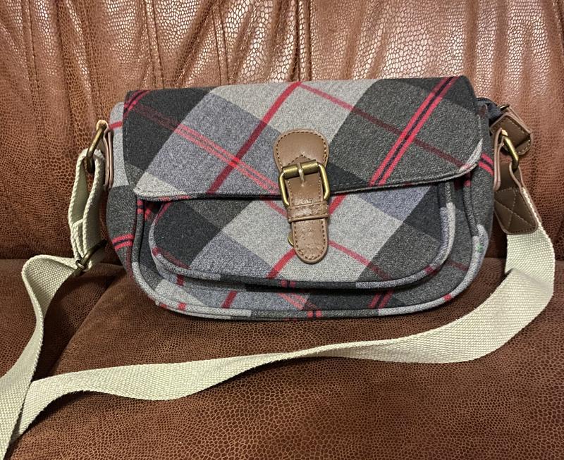 Стильна жіноча сумочка з шерстяної тканини в клітинку