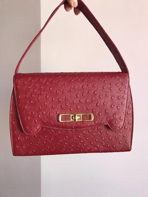 Ця сумка поєднує в собі елегантність і універсальність.Виготовлена з натуральної шкіри з унікальним малюнком під шкіру страуса.Сумка забезпечує відчуття розкоші,а сам дизайн додає нотку гламуру.Має серійний номер 22018.Також модель має 3-и відділення з 2-а перегородками на змійках.Є одна внутрішня кишеня.Фурнітура-бронзового відтінку.Замок сумки-з поворотом,тобто під натиском повертається і відкривається.Добре тримає форму.Без ньюансів. Заміри: 18х25х10см,довжина ручки-50см. Купуйте,рідкісної краси сумочка!