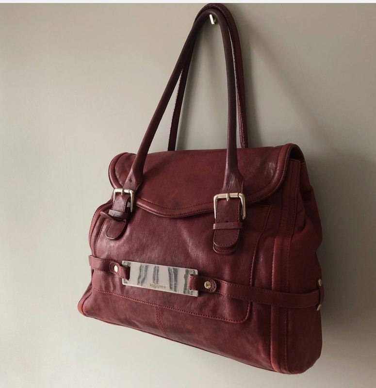 В хорошому стані 4 з пʼяти натуральна шкіра типу "pull-up" або воскова шкіра (іноді її називають "oil leather"). Її поверхня не лакована, а покрита тонким шаром олій чи восків – через це при натисканні чи терті колір змінюється, з'являються світлі та темні ділянки. Це не дефект, а особливість такого матеріалу: вона «живе» і з часом стає благороднішою. Розмір ширина 33/43 см Висота 33 см Довжина ручки 76 см