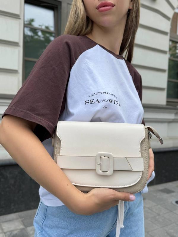 829043 Последние в наличии ❤️🔥👜 Сумка 2х цветная декор Пряжка Цвет: черный; беж; молочный; капучино ремешок регулируется длинный Материал: экокожа Идет на кнопке, внутри на молнии Размер : 23/16 АS