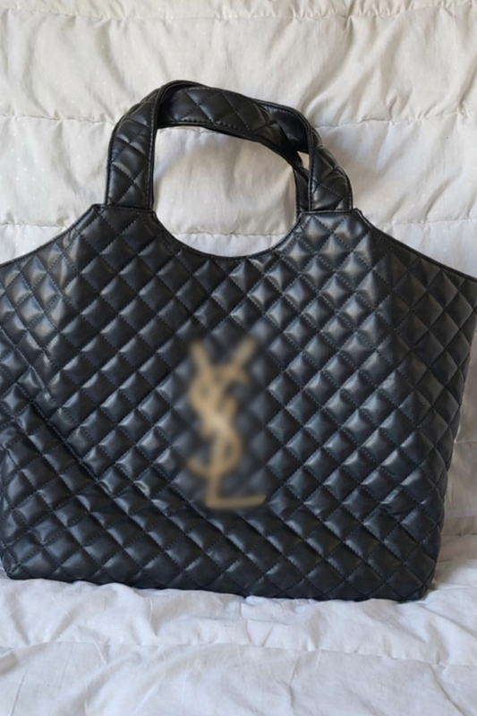 стильная кожаная стеганая вместительная сумка