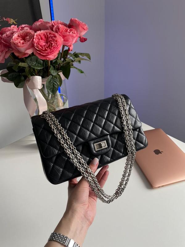 👜 2.55 Reissue Double Flap Leather Bag Black/Silver 📐 Размер: 25 х 15 х 6 см 🧵 Материал: Кожа Сумка выполнена из гладкой кожи с эффектом помятости. Внутри одно отделение, также есть два открытых дополнительных кармана. Подкладка у сумки из гладкой кожи вишневого цвета, есть брендовая маркировка. Закрывается сумка благодаря фирменному замку. Фурнитура металлическая, брендированная. Золотистая цепочка может регулироваться как для ношения в руке, так и через плечо. Комплектуется в брендовой коробке и пыльнике, также в комплекте есть карточка, буклеты и подарочная лента.