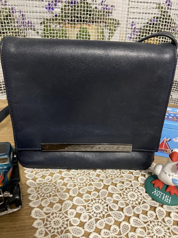 Сумочка з натуральної шкіри. Зроблена на замовлення. Кишеня всередині на замочку і на задній частині без замка. Застібається на магнітну кнопку. Колір темно-синій. Розміри 19 х 20 х 6см