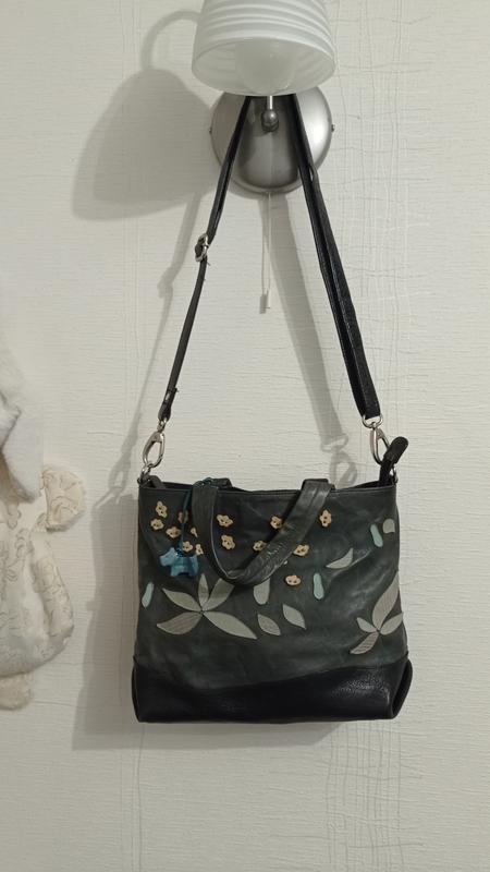 Отличная сумочка, бы в, но в хорошем состоянии. Трошки припачканные подкладка, сфотографировала, потому что же света) И две пламки с задней стороны, нп критически, учтены в цене. В целом, красивая и очень удобная, легкая. 33 на 25.