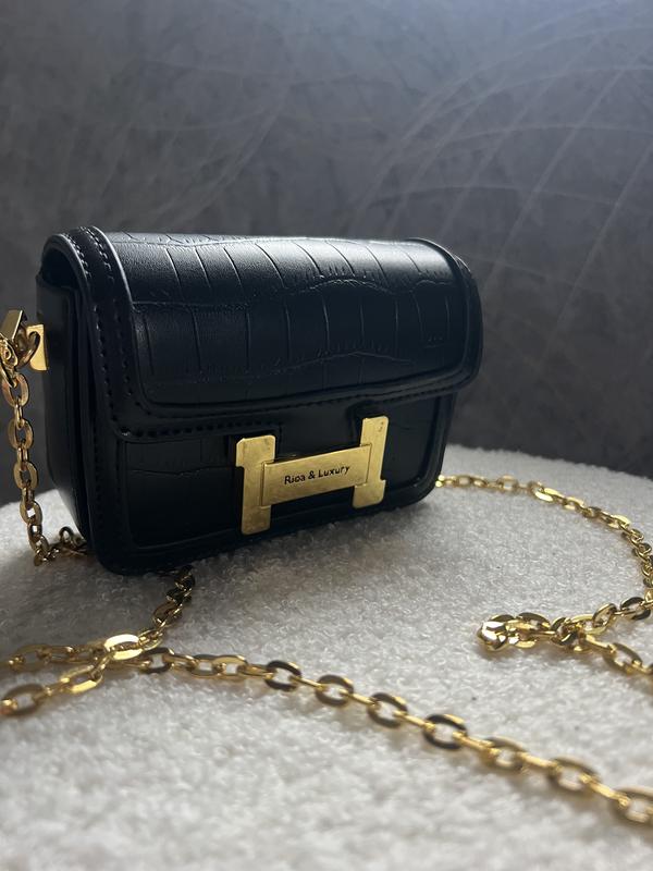 Сумочка стильна на магнітній кнопці, ручка ціпок зйомна , чорного кольору, карманів немає