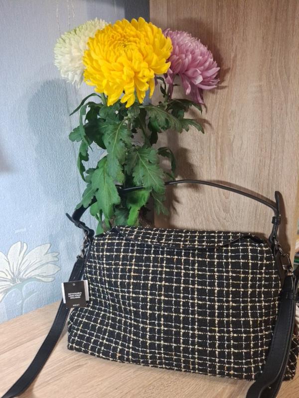 сумка брендовая,новая с бойкой,твидная, умывает удлиненную ручку