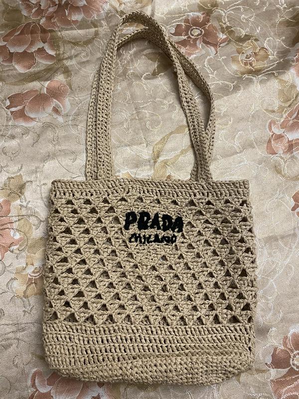 Легка екологічна сумочка с стилі PRADA. Довжина 32см. Висота 26см. Висота з ручками 60см.