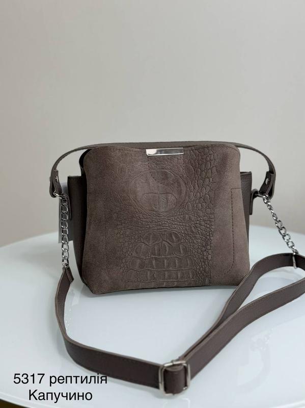 Женская стильная и качественная сумка из натуральной замши и эко кожи капучино рептилия