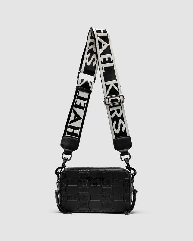 Michael Kors Snapshot - Розмір: 21 х 13 х 7 см - Матеріал: еко шкіра Опис: Сумка виготовлена з люксової еко шкіри з фірмовим тисненням. Усередині два відділення на блискавках, є невелика кишенька позаду сумочки. Підкладка всередині із чорної еко шкіри. Ремінець текстильний з фірмовими написами, регулюється від 63 до 105 см у довжину. Комплектується в брендованій коробці "Michael Kors" та папері
