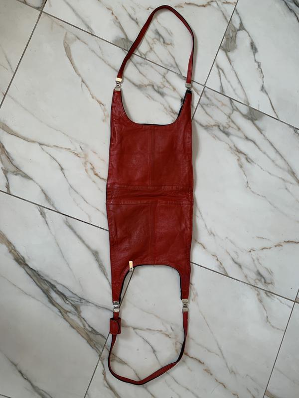 Сумка натуральна шкіра. Можно носити на дві сторони, як червона так і чорна.Дуже цікава модель на два відділення.. Довж: 35 Шир: 30 Стан ідеальний.