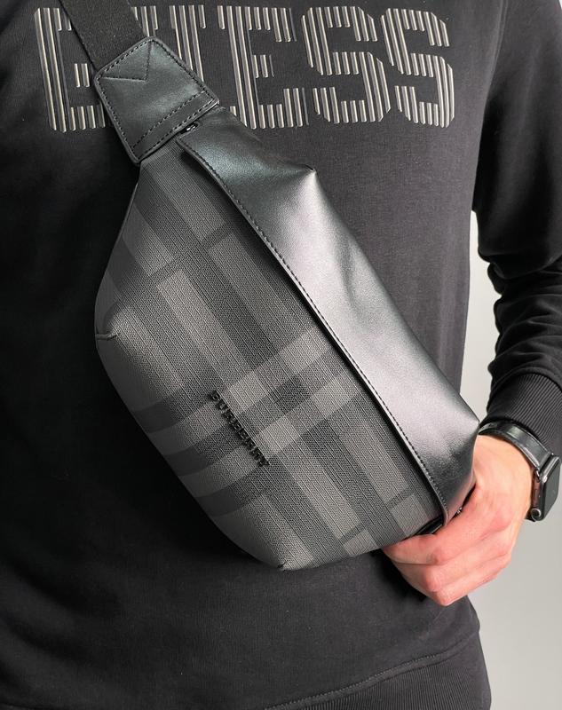 Мужская кожаная сумка бананка burberry cason belt bag charcoal