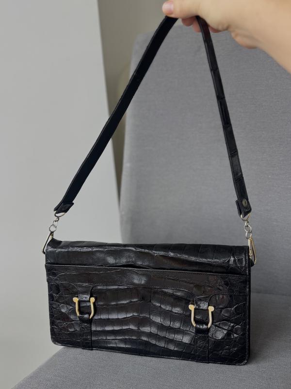 Справжня шкіра крокодила. Дуже якісно зроблена. Має багато відділів. Крутий ремінець. Стан ідеальний, незначні потертості на фурнітурі, яких при носці непомітно. Така сумка може бути хоч на щодень, хоч на свято. Дуже актуальна модель. Висота 15 см Ширина 28 см Глибина 6см Ремінець 34 см