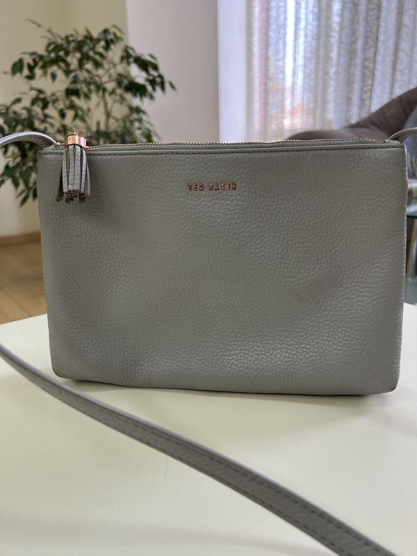 Якісна мʼясиста шкіра! Трендовий сірий колір! Стан прекрасний! Запах шкіри. 24*15, довга ручка (55), що зручно носити через плече