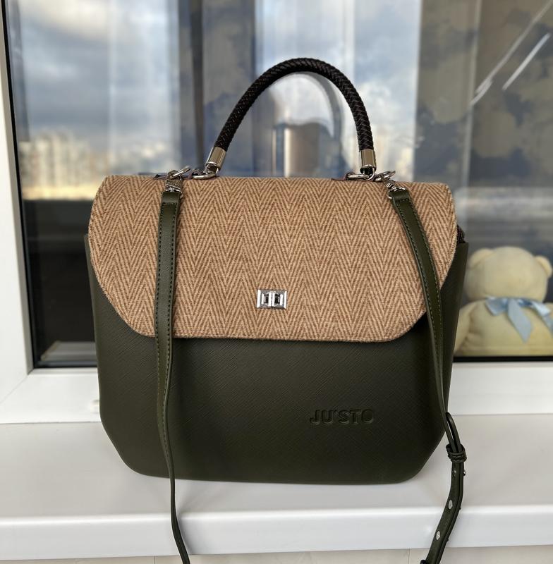 Сумкa конструктор італійського бренду «Ju’sto» оригінал, зимова колекція Матеріал – високоміцний поліуретан, стійкий до морозів та вологи, легко чиститься. Органайзер – текстиль (вовняне полотно «ялинка»), дуже якісна фурнітура. Ручка - натуральна шкіра Корпус, внутрішня частина, ручки можуть змінюватися. З ними можна експериментувати Розміри: довжина 34 см , висота 30 см, ширина 13 см